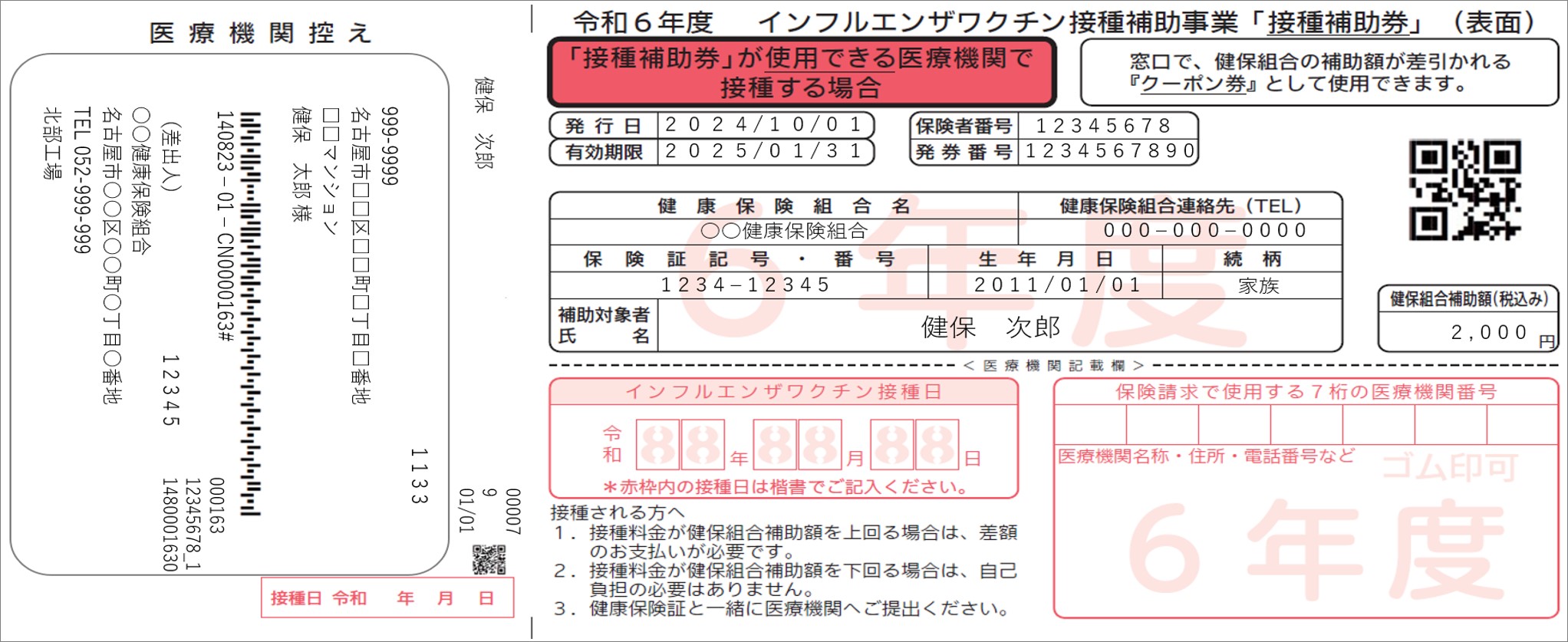 被保険者の方へインフルエンザ予防接種補助券を発送しました。