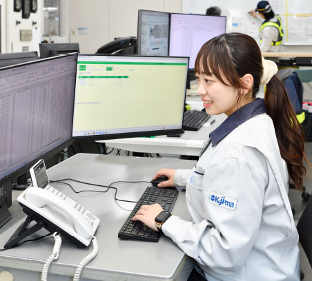 2017年に新卒入社し、現在は工務を担当しています。主な業務はトラックの配車スケジュールの作成で、各車両がどの納入先をどの順番で回るかを調整し、急な追加や変更にも迅速に対応します。入社当初は納入先の地名も分かりませんでしたが、調べて覚えるうちに土地勘が身につきました。午前中はメールで届く変更対応、午後は1週間先の配車計画を作成。その後、送り状や原料の検収、数量確認、書類作成など事務作業も行います。工務は会社の業務を円滑に進めるための多様な業務を支える存在で、幅広い業務に携わりながら成長を実感しています。
