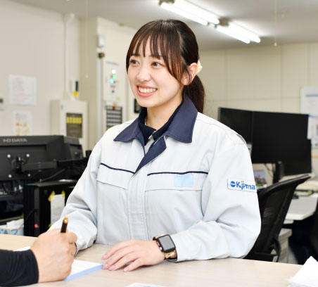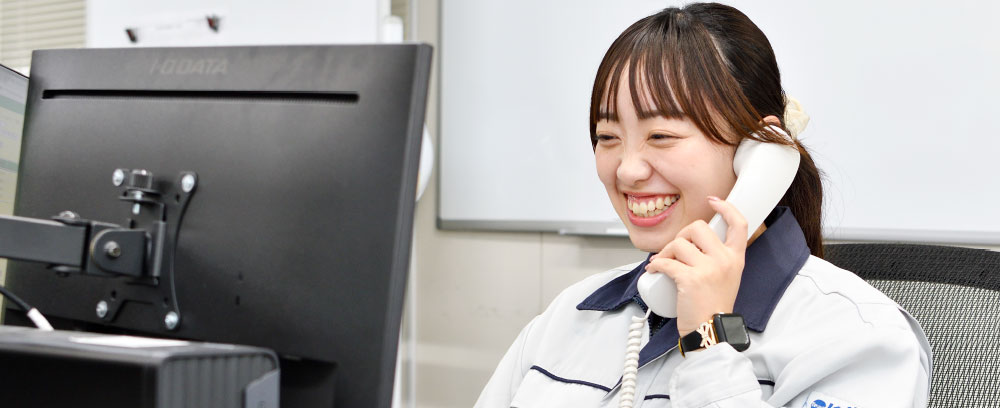 私が勤務する工務は7名体制で、ほとんどが40代~50代のベテラン社員です。20代の私とは世代が離れていますが、皆さん気さくに話しかけてくれるので年齢差を感じることはありません。女性は私一人ですが、丁寧で優しく接してくれ、困ったときには何でも相談できます。個性豊かなメンバーが揃っていて、最初はとっつきにくそうに見える人もいますが、話してみると親切で頼れる方ばかりです。ミスが大きな影響を及ぼす責任ある業務ですが、チームで支え合う体制が整っており、安心して仕事に取り組めるところが魅力です。