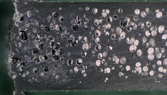 部品の軽量化を図る手段は様々で、板金から樹脂への材料置換や製品の板厚低減、密度の低い材料への置換などがあります。現在当社が力を入れている熱可塑性樹脂の発泡成形は、射出成形時に発泡セルが溶融樹脂の中で膨らみ成形品の密度を下げるため、劇的に部品を軽量化できます。また、膨らむ力で起きる金型内の内圧の高まりは、リブヒケなどの外観不良を緩和し、部品あたりの樹脂使用量を低減させます。その効果をより高めるために材料・金型・工法すベてが一体となり、塗装品質を満足させる高倍率発泡成形の技術開発を目指し取り組んでいます。