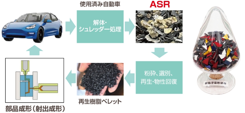 廃車由来プラスチック残渣の物性回復を目指す枠組みに参画。名古屋大学や自動車メーカー、設備メーカーと共同でリサイクル技術の開発を進めています。