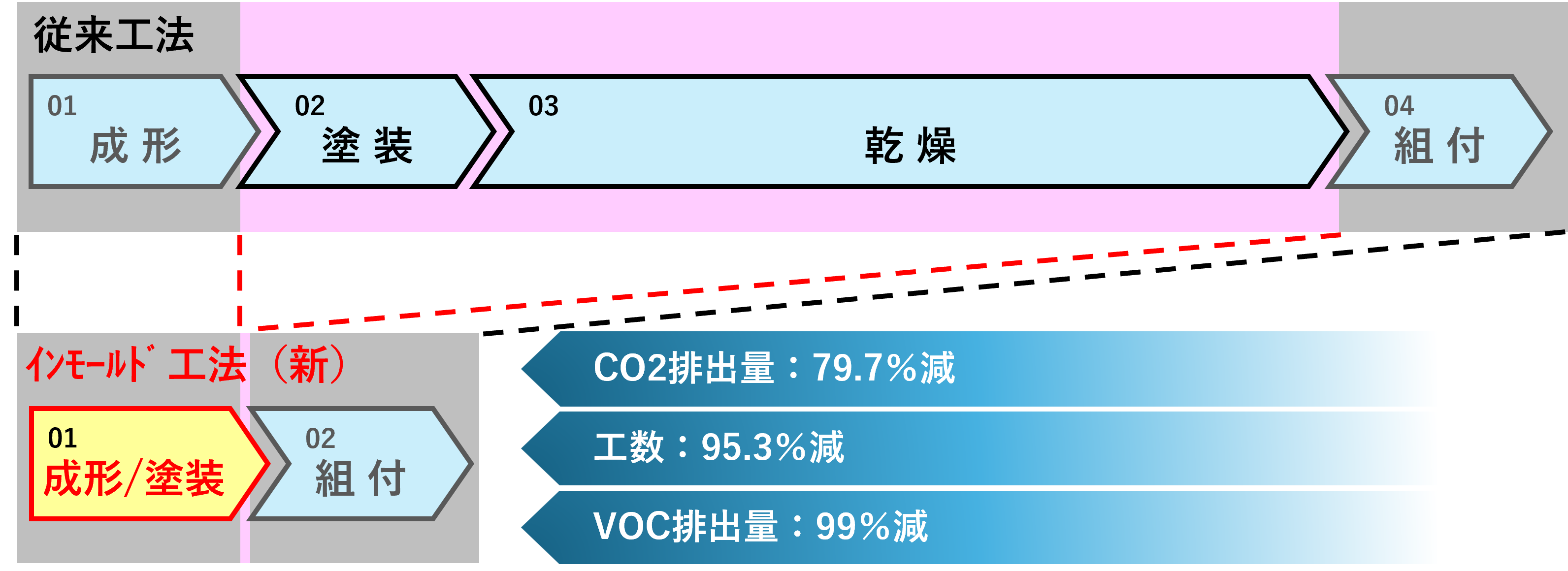 本取組みでは金型設備内で塗料を直接注入して、成形と塗装の一本化を実現したことが、自動車塗装工程における省エネルギー等の環境負荷低減に大きく貢献するものと高く評価されました。