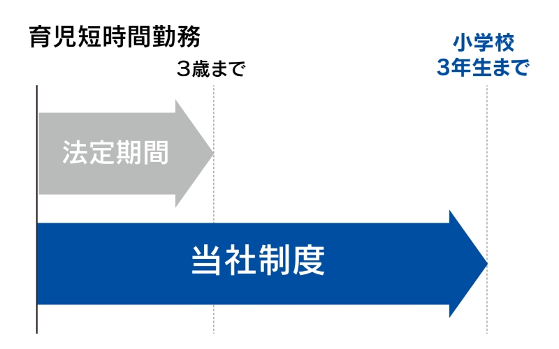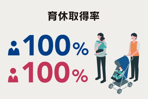 そんな想いから内浜化成では、出産や育児と仕事を両立させ、ライフステージが変化しても継続的にキャリアを積んでいけるように、産休・育休制度の活用を推進。今では産休・育休制度取得100%、復職100%、育児短時間制度取得率100%の会社になりました。今後も安心して働ける会社を目指し、女性社員をサポートしています。