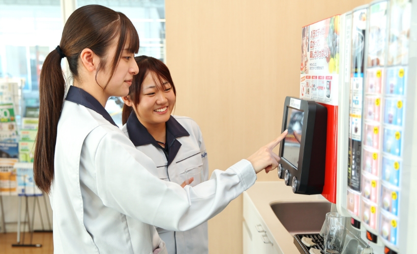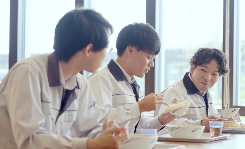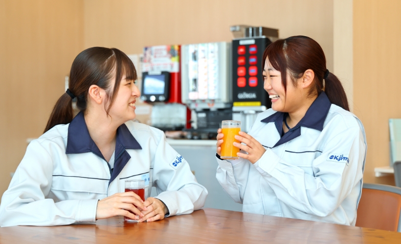 ドリンクディスペンサーを、事務所や各工場に設置。マイタンブラーに、いつでも無料でお好きなドリンクを注げます。休憩時間には、ドリンクサーバー周りで談笑する社員の姿も。夏の熱中症対策にもなるように、スポーツドリンクも用意。