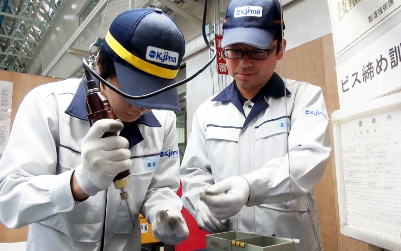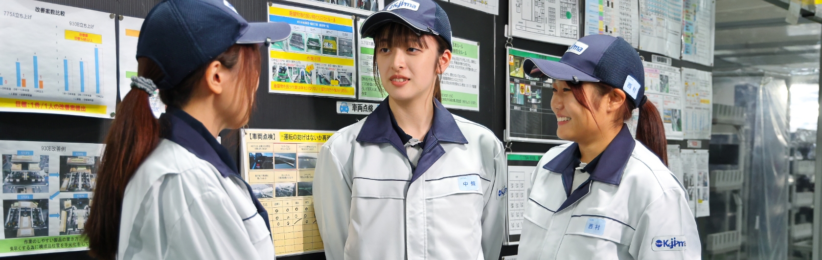 10名で構成される11ライン組み付けの班長として、工程巡回や作業性アップのための班員の教育、作業確認などを行うのが私の仕事です。検査組み付けで問題点を洗い出し、その改善で生産性がアップすると嬉しいですし、やりがいを感じますね。