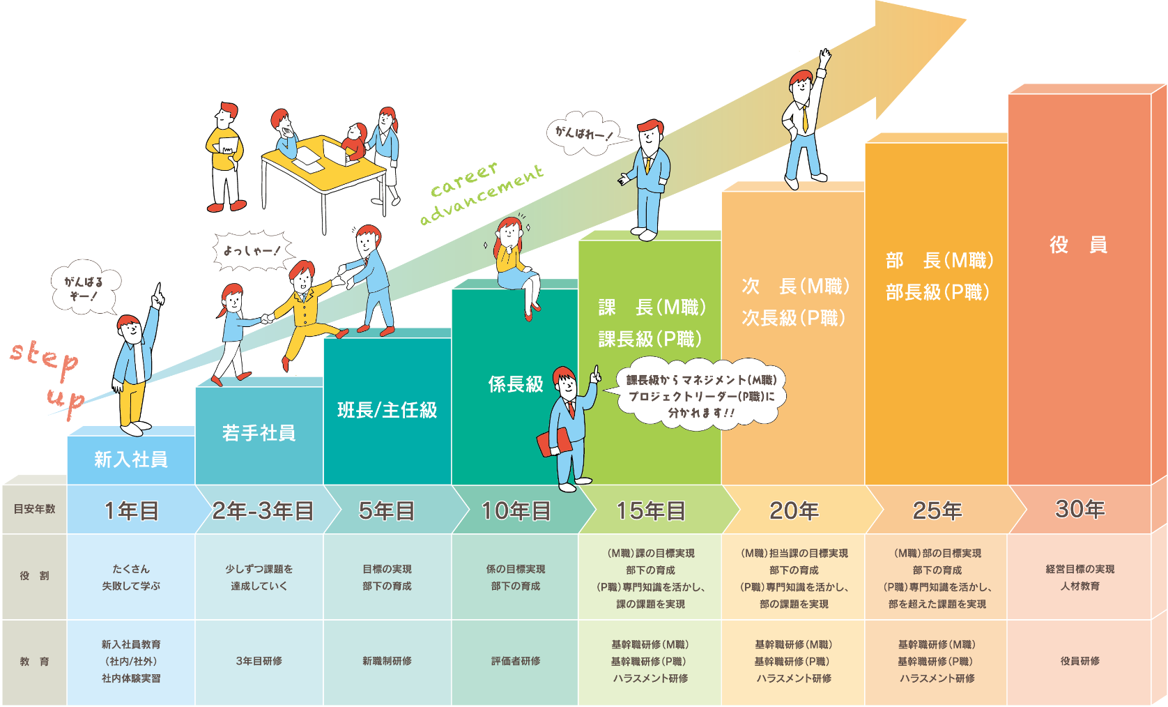 当社では定型教育に加えて、社員の皆さんの主体性を支援する教育制度を用意。