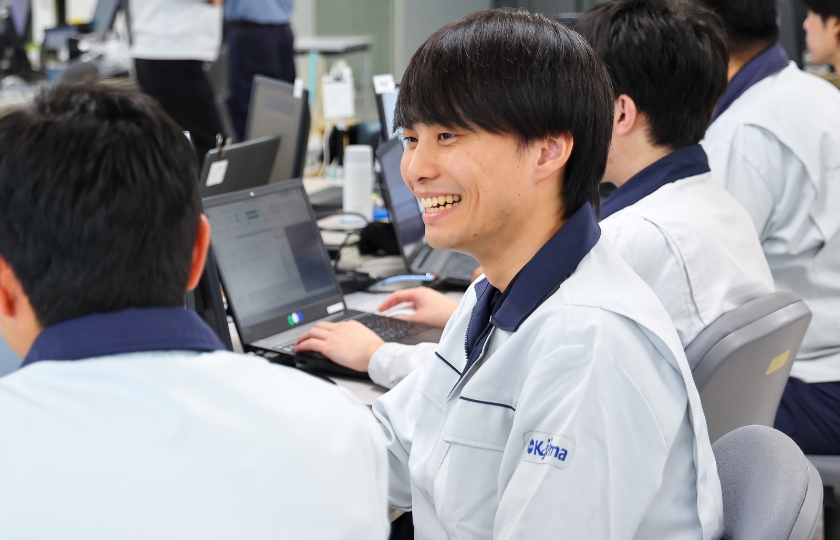 大切にしているのはコミュニケーションです。報告、連絡、相談はもちろん、情報の共有や意見交換を行うことが業務の効率化につながると実感しています。オフィスに仕切りがないのもいいですね。別の部署にもすぐに相談できる。今後の目標は、メーカーに出向き作業に立ち会うなど交流と学びの機会を増やして独り立ちできるようにしていきたいです。