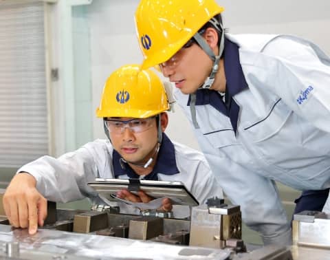 仕事の流れとしては、まず形になった金型の試し打ちをして、不具合を洗い出します。それを成形機の操作や金型の改造で解消し、量産につなげていきます。複数の部品の生産準備を並行し進めるので、日程の調整やスケジュール管理も求められます。