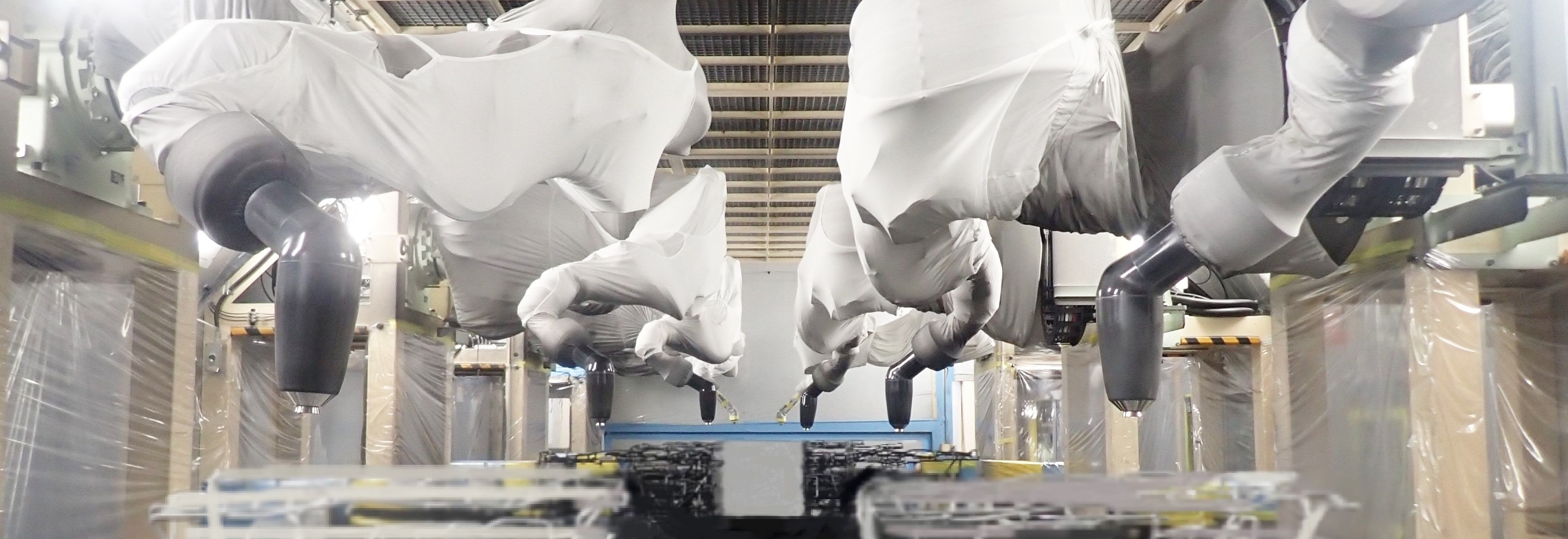 当社は『より良い製品をタイムリーに』をモットーとして、世界初の技術を搭載した設備など、生産設備の自社開発に積極的に取り組んでいます。自動塗装機器、塗装外観検査の自動機の開発、自動車外装部品向けインモールド成形技術など、当社がオリジナルで開発した設備も数多くあり、その中には世界初の技術を搭載した設備もあります。