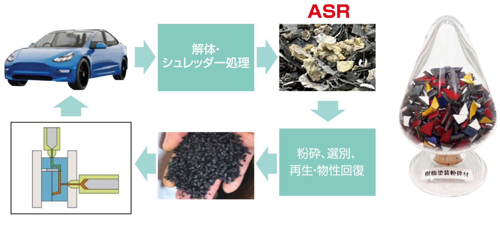 (環境への取り組み)当社には鉄から樹脂へ主力製品の転換に成功した歴史があります。廃棄物低減への取り組みとして、廃車由来プラスチック残渣の物性回復を目指す枠組みに参画。名古屋大学、自動車メーカーとの共同で、リサイクル技術開発に取り組んでいます。
