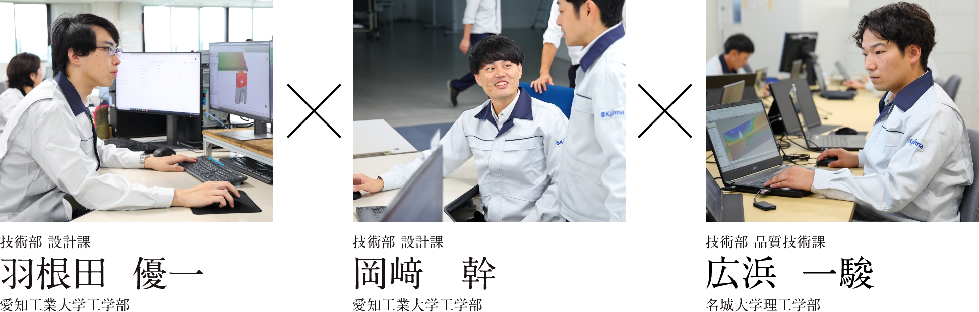 互いに協力し合い仕事を回す。広 浜 所属する品質管理は、車の品質を決める部署です。設計が形を作り、それを解析したものが部品化できるかを判断していく。そのための細かな測定や様々な調整などもする必要があります。